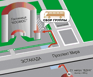 07:00 Сбор группы у ст. м. "ВДНХ", стоянка справа от гостиницы "Космос". Точное место, время сбора и контактный телефон гида/координатора необходимо уточнять за 1 день до начала тура на сайте в разделе "Выезд/прибытие".